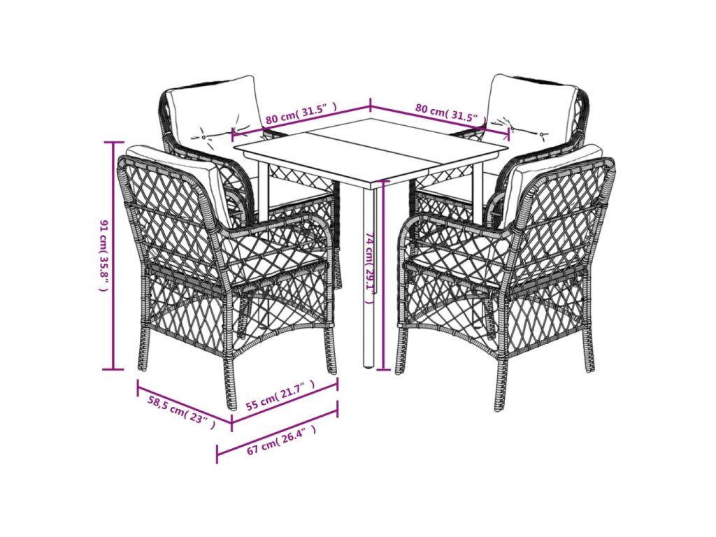 - Rozměry: 80 x 80 x 74 cm (Š x H x V)