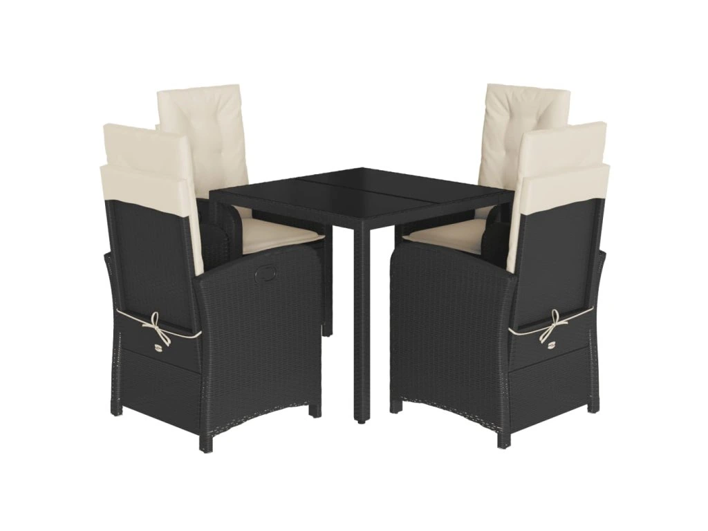 5dílný zahradní jídelní set s poduškami černý polyratan 3212195