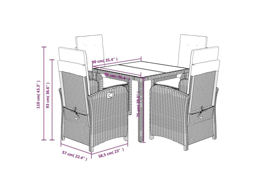 - Rozměry při poloze vsedě: 57 x 58,5 x 93 cm (Š x H x V)