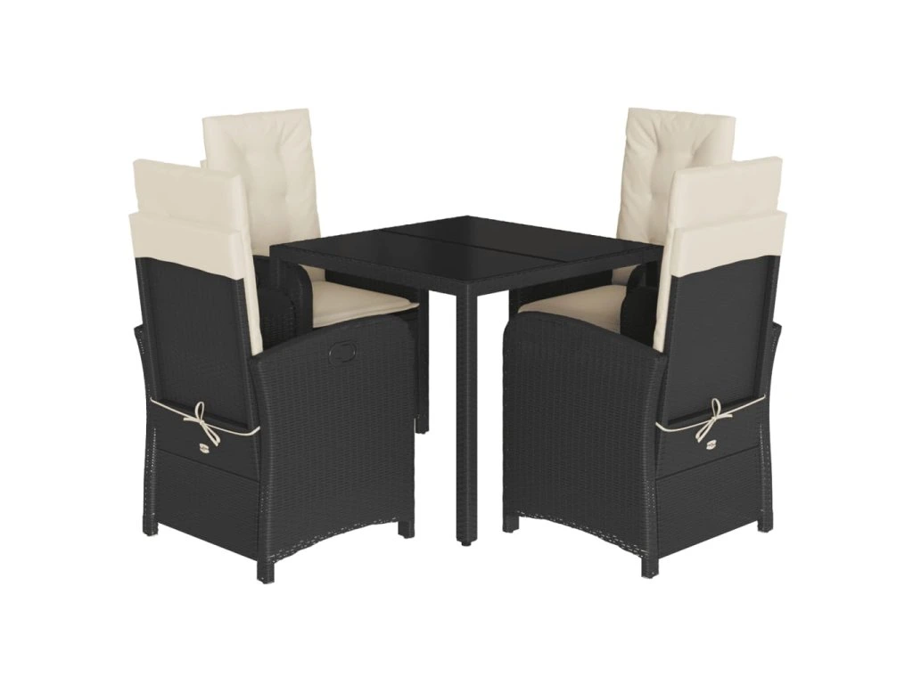 5dílný zahradní jídelní set s poduškami černý polyratan 3212196