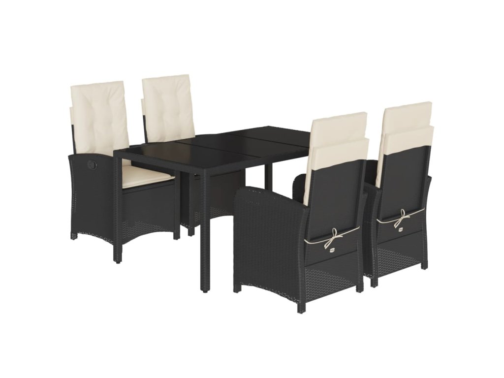 5dílný zahradní jídelní set s poduškami černý polyratan 3212197