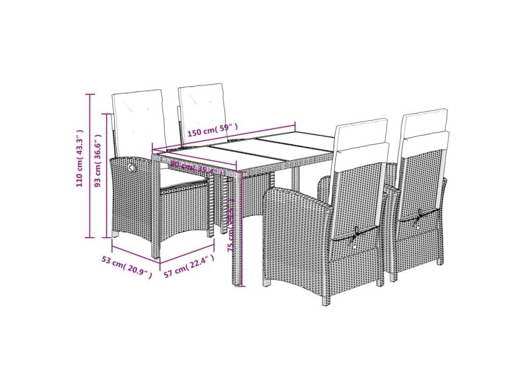Tento zahradní jídelní set je skvělou volbou pro stolování pod širým nebem nebo jen tak pro odpočívání na zahradě, dvorku či terase.