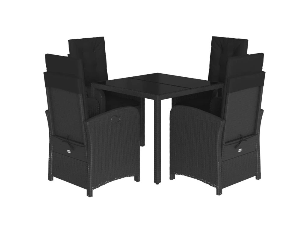 5dílný zahradní jídelní set s poduškami černý polyratan 3212205