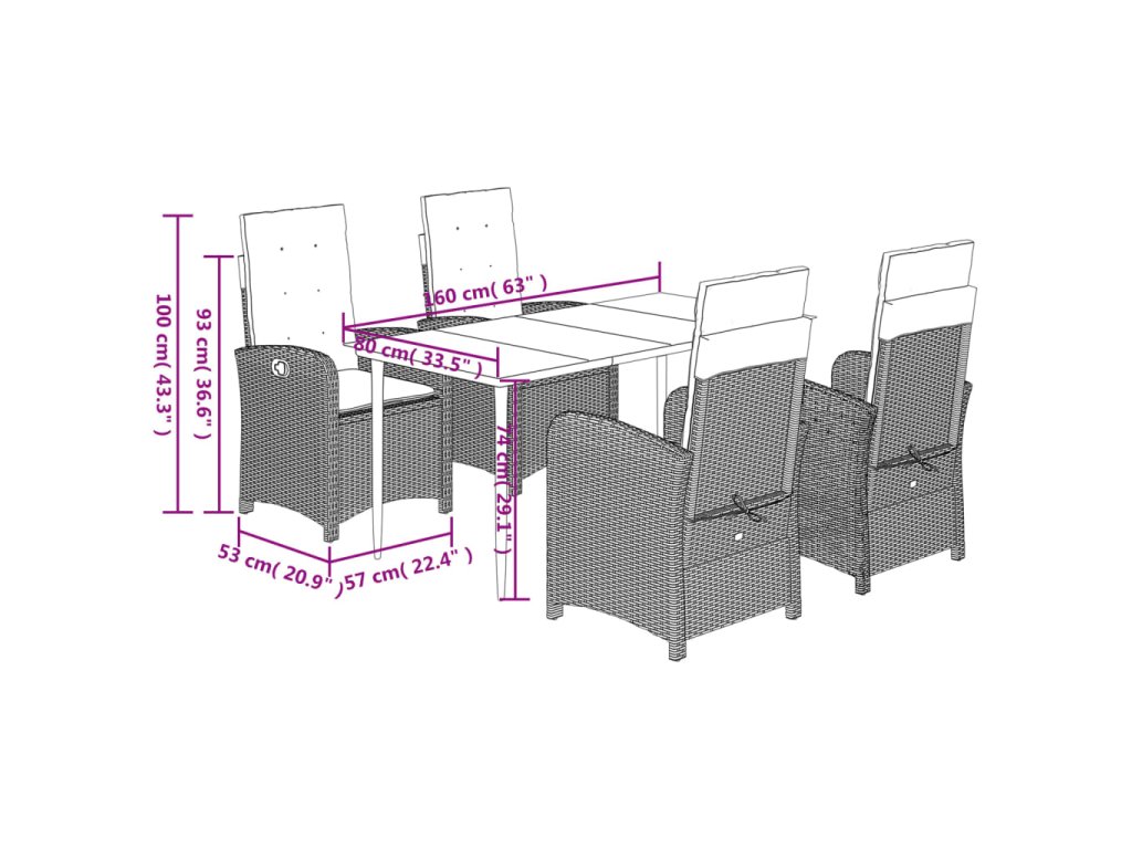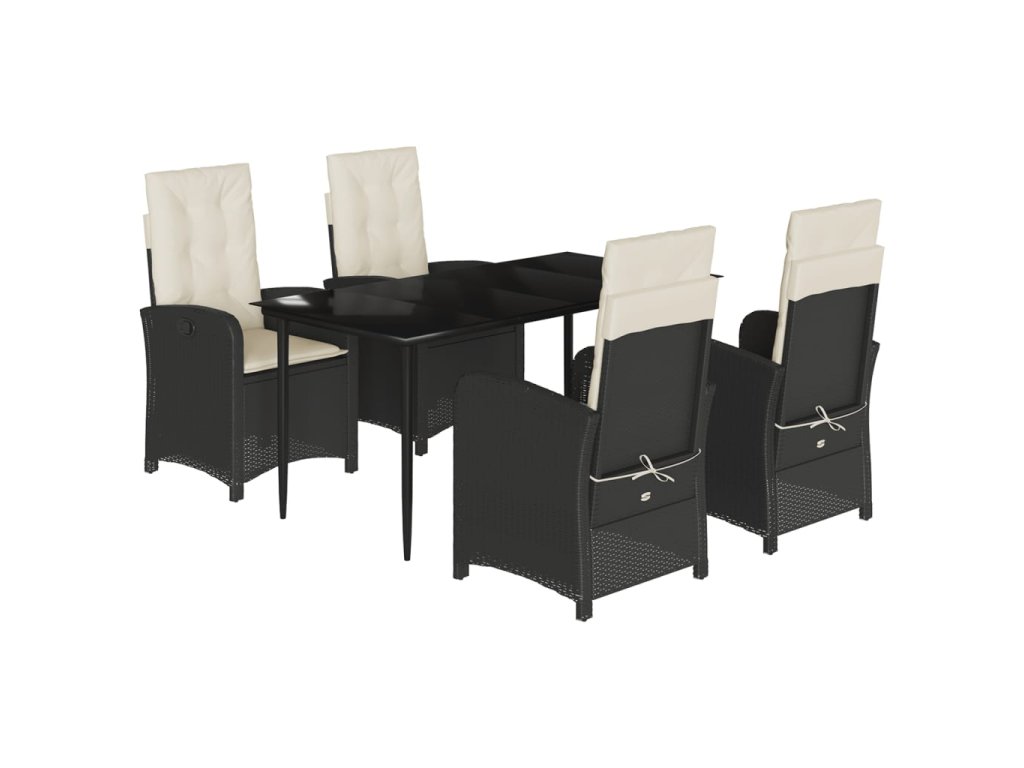 5dílný zahradní jídelní set s poduškami černý polyratan 3212294