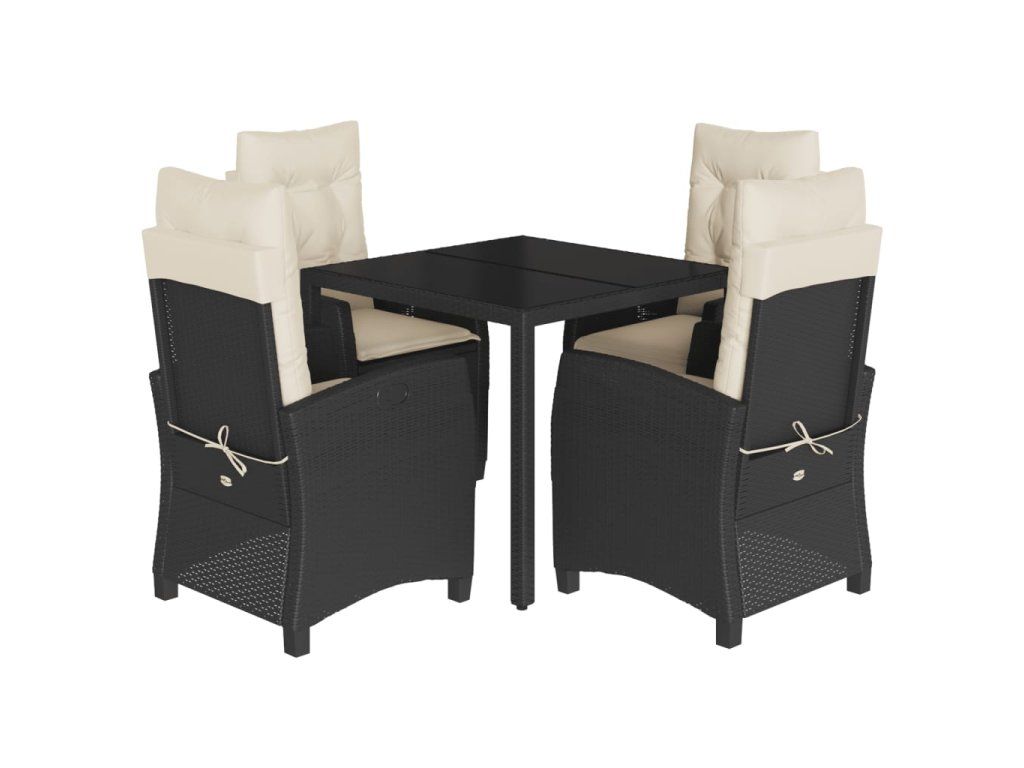 5dílný zahradní jídelní set s poduškami černý polyratan 3212628