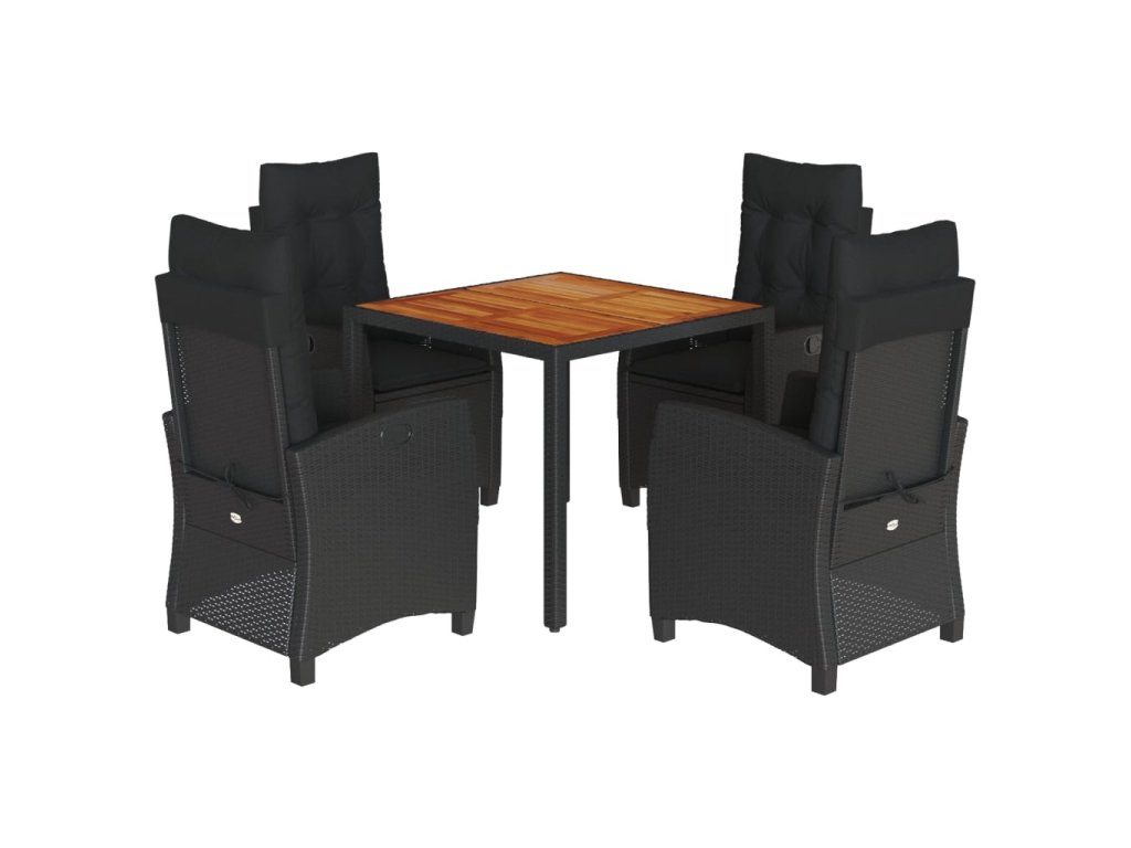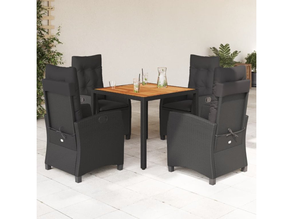5dílný zahradní jídelní set s poduškami černý polyratan 3212663