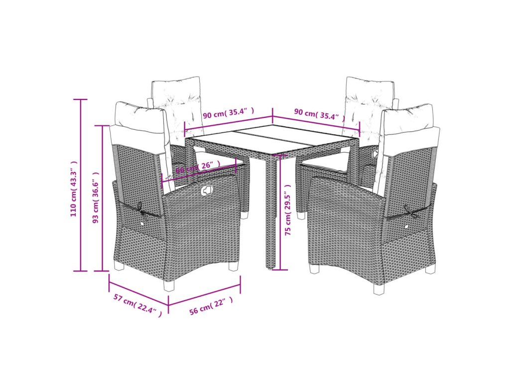 - Rozměry: 90 x 90 x 75 cm (D x Š x V)