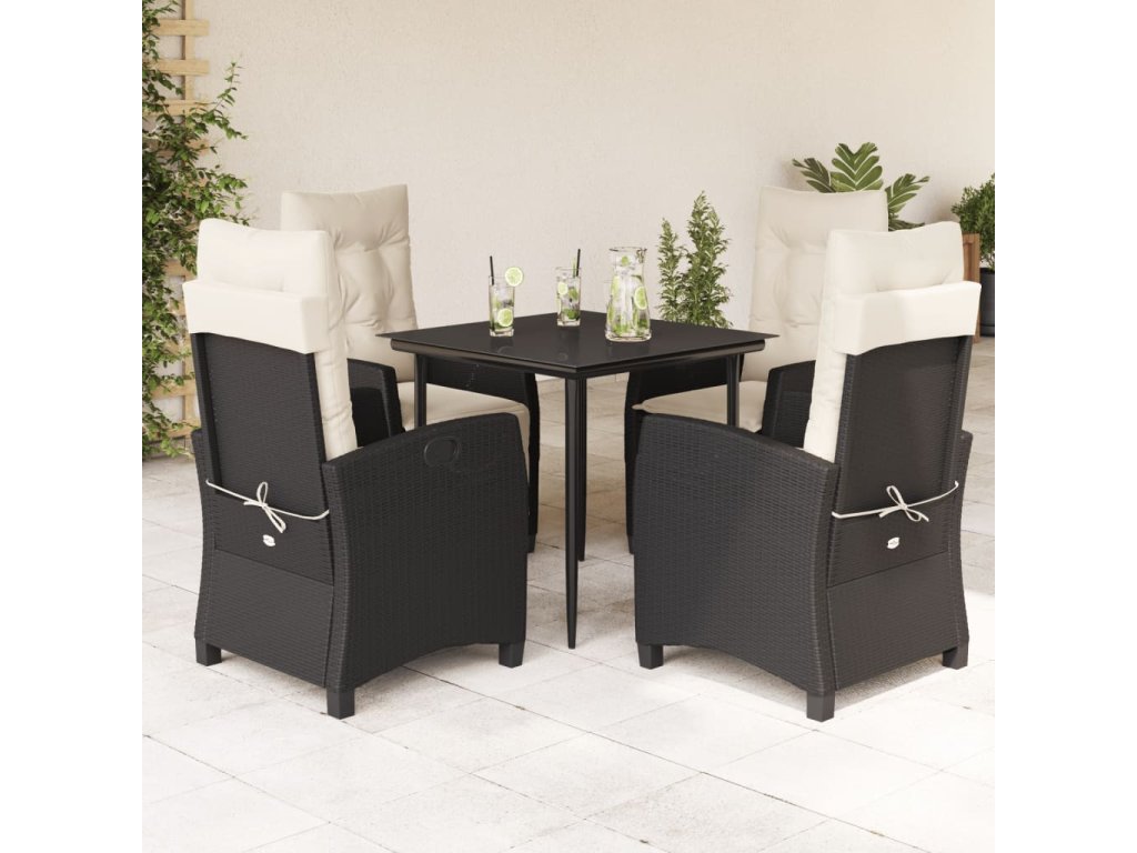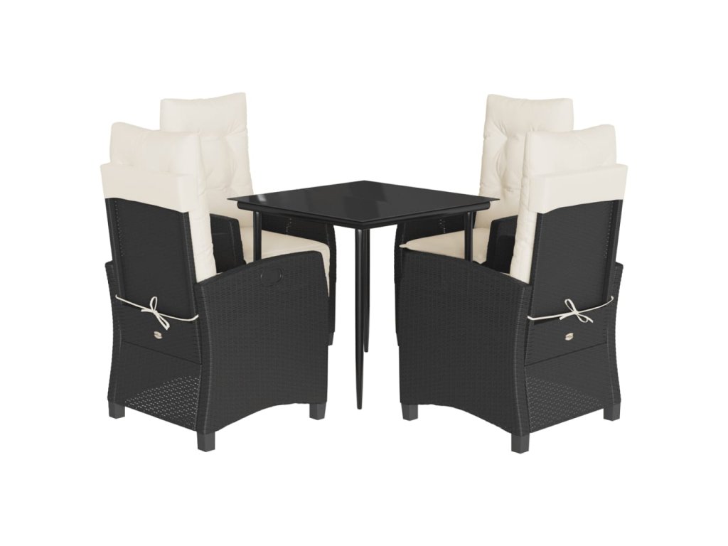 5dílný zahradní jídelní set s poduškami černý polyratan 3212724