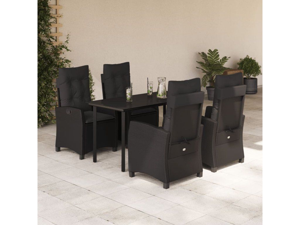 5dílný zahradní jídelní set s poduškami černý polyratan 3212755