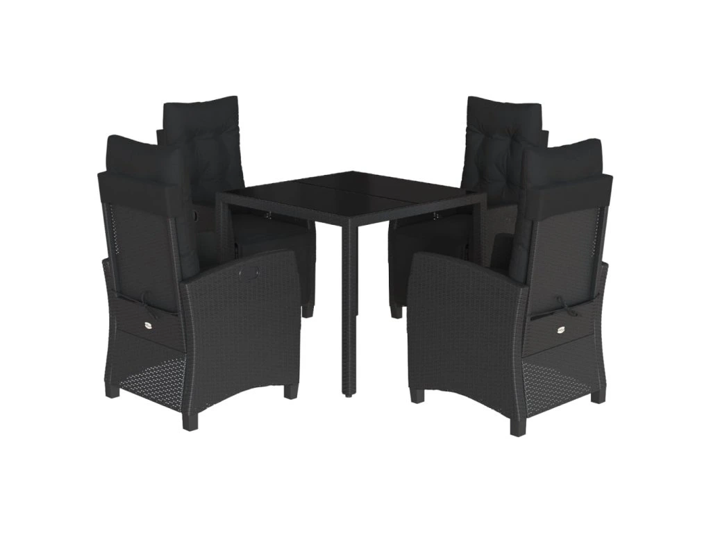 5dílný zahradní jídelní set s poduškami černý polyratan 3212889