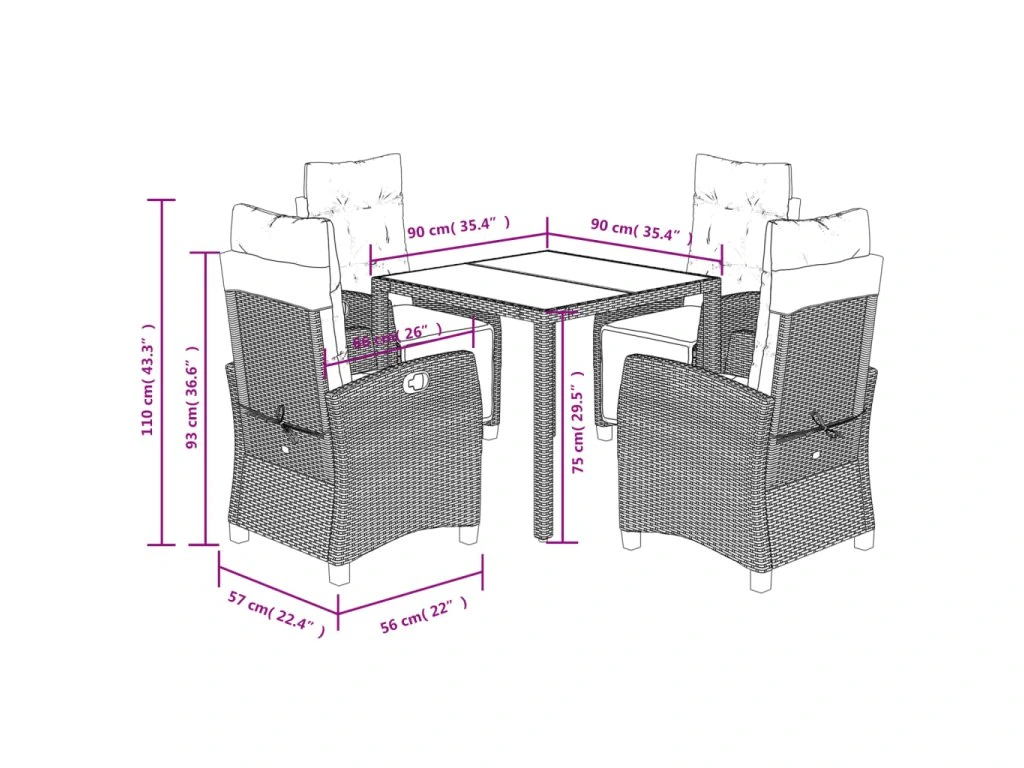- Skleněná deska stolu: Deska venkovního stolu je zhotovena ze silného a odolného tvrzeného skla, takže ji snadno očistíte vlhkým hadříkem a zároveň do vašeho venkovního prostoru vnese nádech elegance.