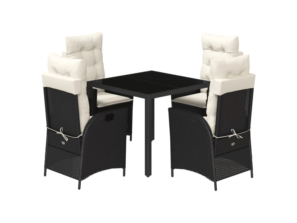 5dílný zahradní jídelní set s poduškami černý polyratan 3213059