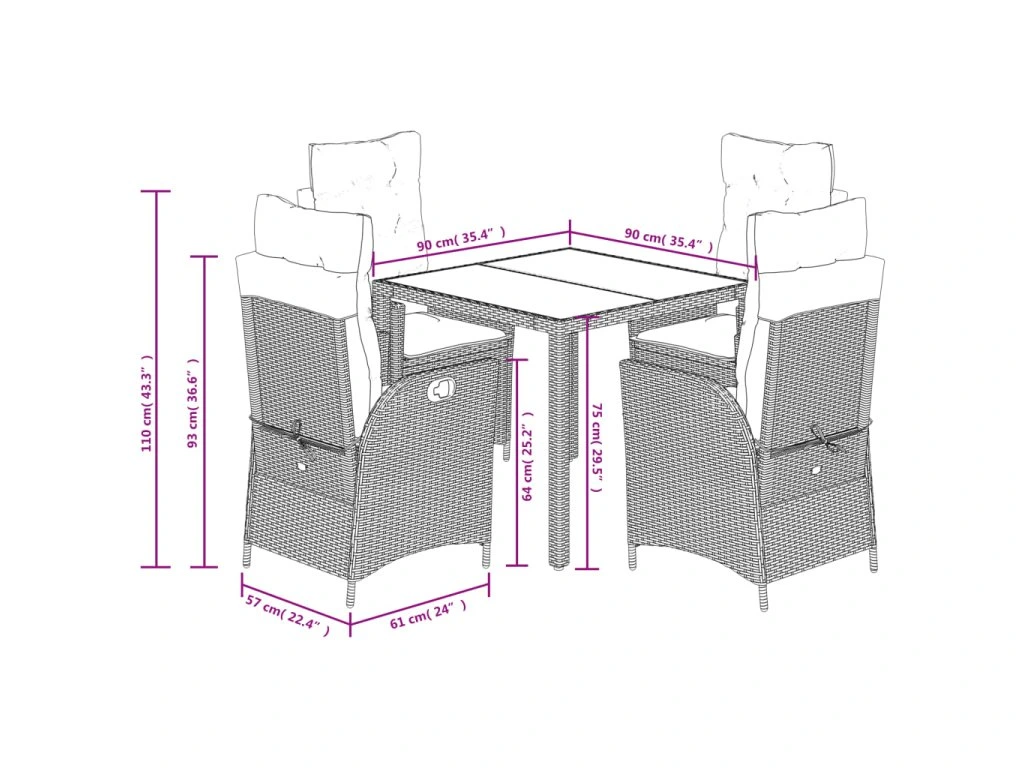 - Skleněná deska stolu: Deska venkovního stolu je zhotovena ze silného a odolného tvrzeného skla, takže ji snadno očistíte vlhkým hadříkem a zároveň do vašeho venkovního prostoru vnese nádech elegance.