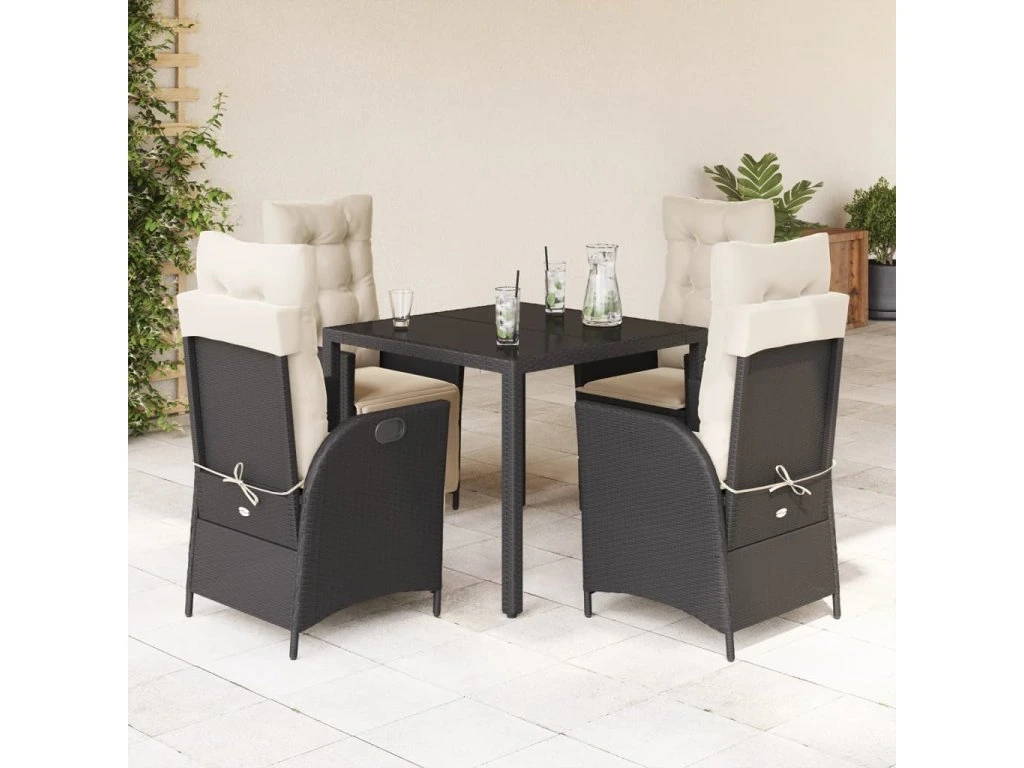 5dílný zahradní jídelní set s poduškami černý polyratan 3213060