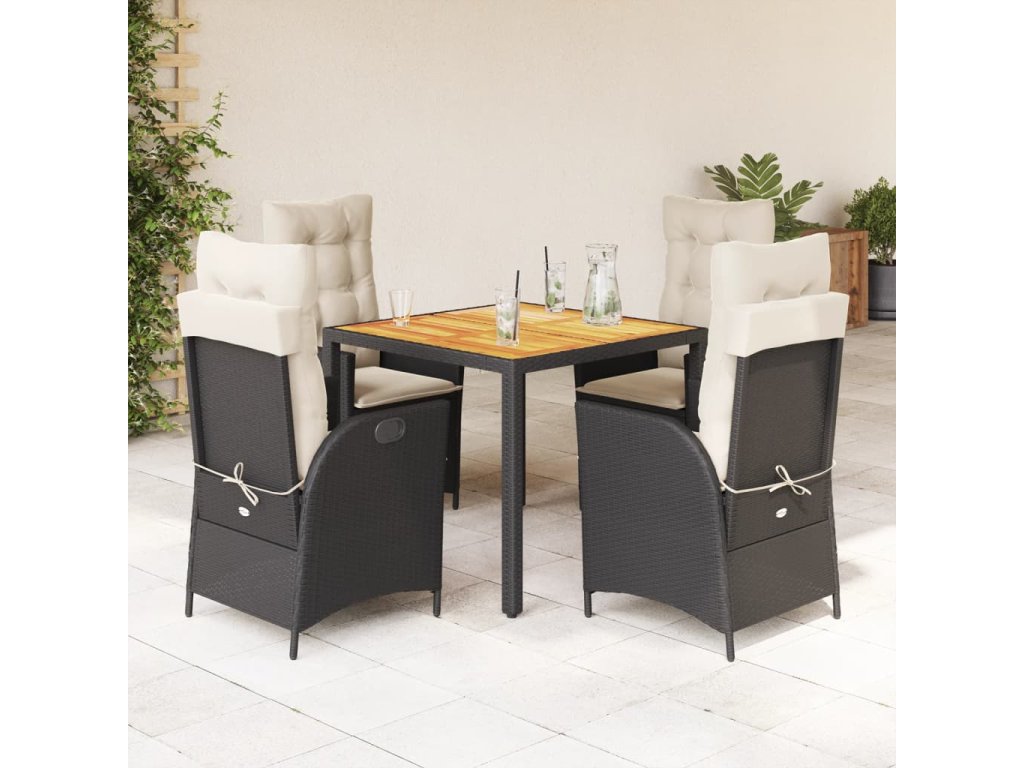 5dílný zahradní jídelní set s poduškami černý polyratan 3213086