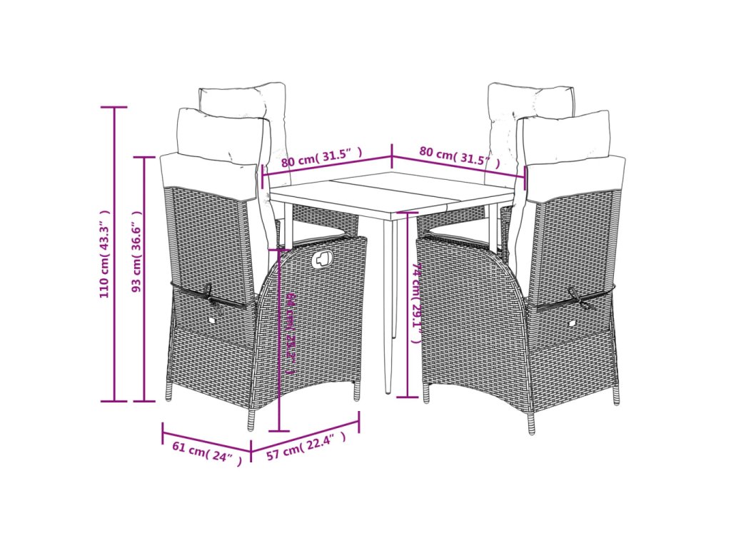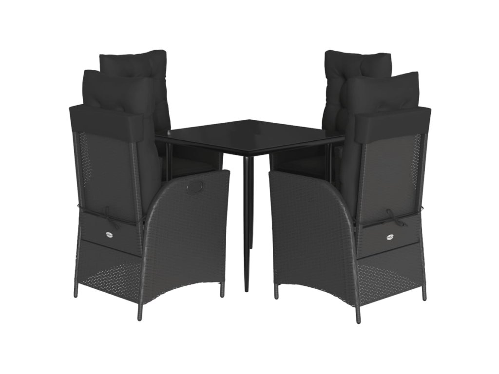 5dílný zahradní jídelní set s poduškami černý polyratan 3213175