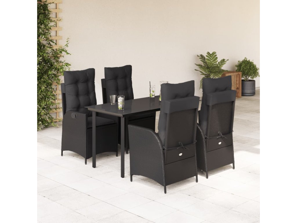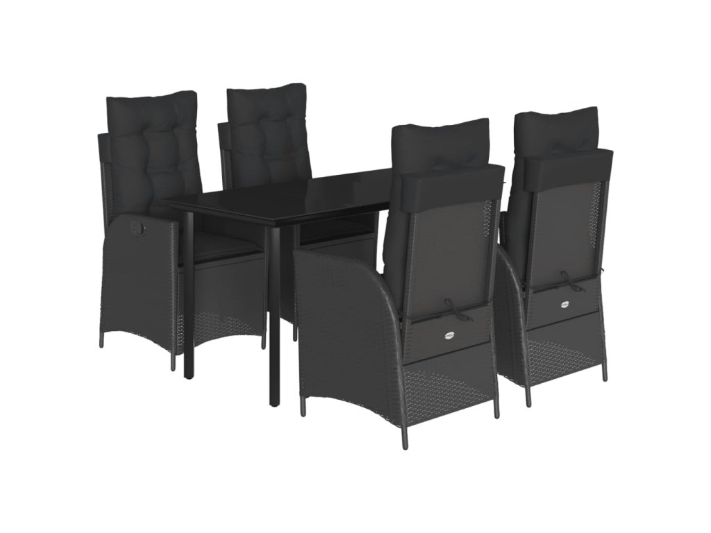 5dílný zahradní jídelní set s poduškami černý polyratan 3213187