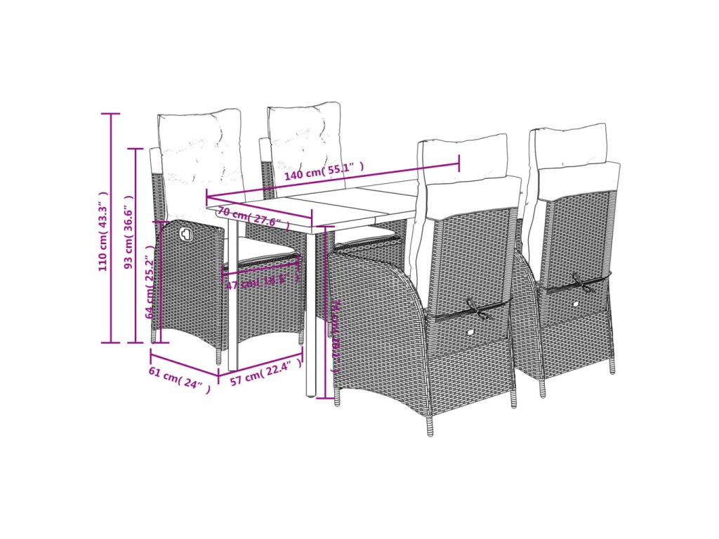 Tento zahradní jídelní set je skvělou volbou pro stolování pod širým nebem nebo jen tak pro odpočívání na zahradě, dvorku či terase.
