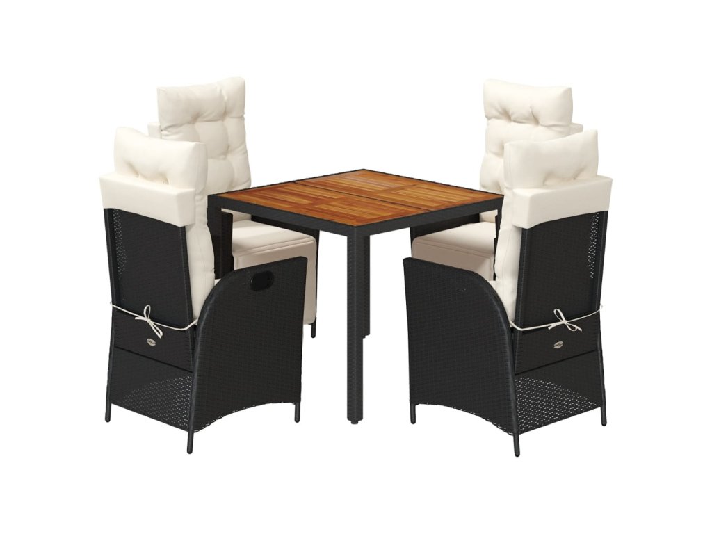 5dílný zahradní jídelní set s poduškami černý polyratan 3213333