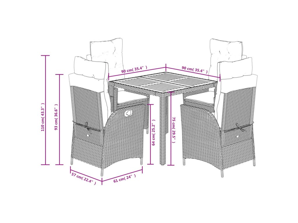 - Materiál: PE ratan, práškově lakovaná ocel, masivní akáciové dřevo s olejovou povrchovou úpravou