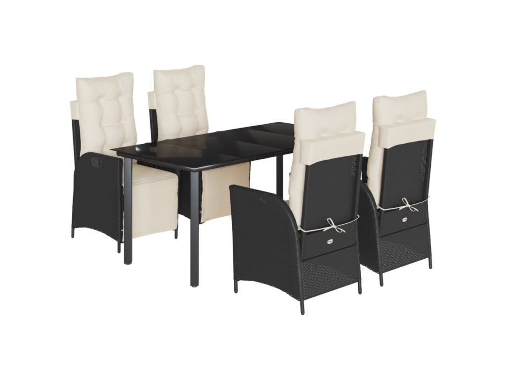 5dílný zahradní jídelní set s poduškami černý polyratan 3213388
