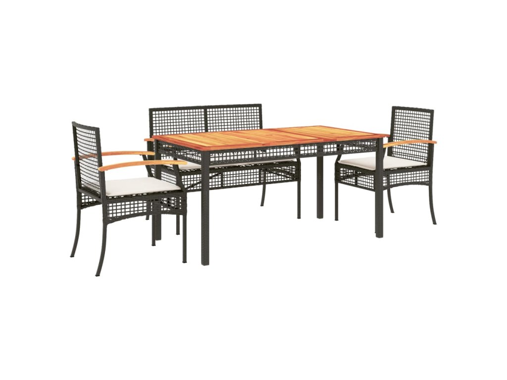 5dílný zahradní jídelní set s poduškami černý polyratan 3213568