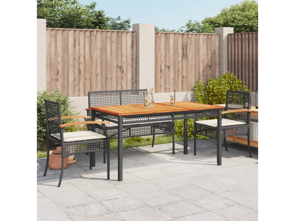 - Materiál: PE ratan, práškově lakovaná ocel, masivní akáciové dřevo s olejovou povrchovou úpravou