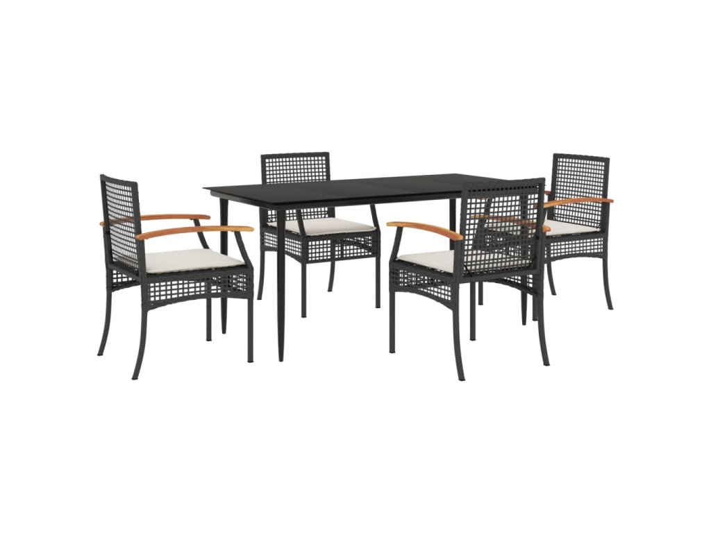 5dílný zahradní jídelní set s poduškami černý polyratan 3213599