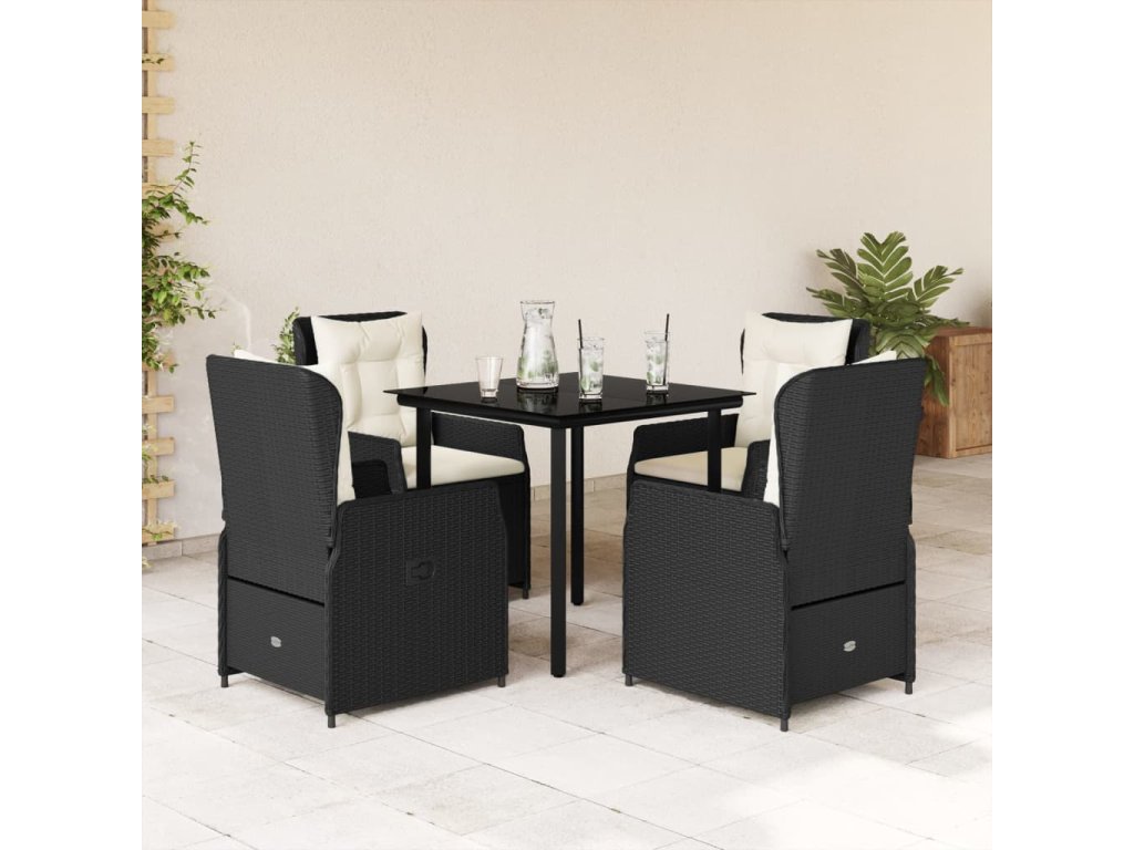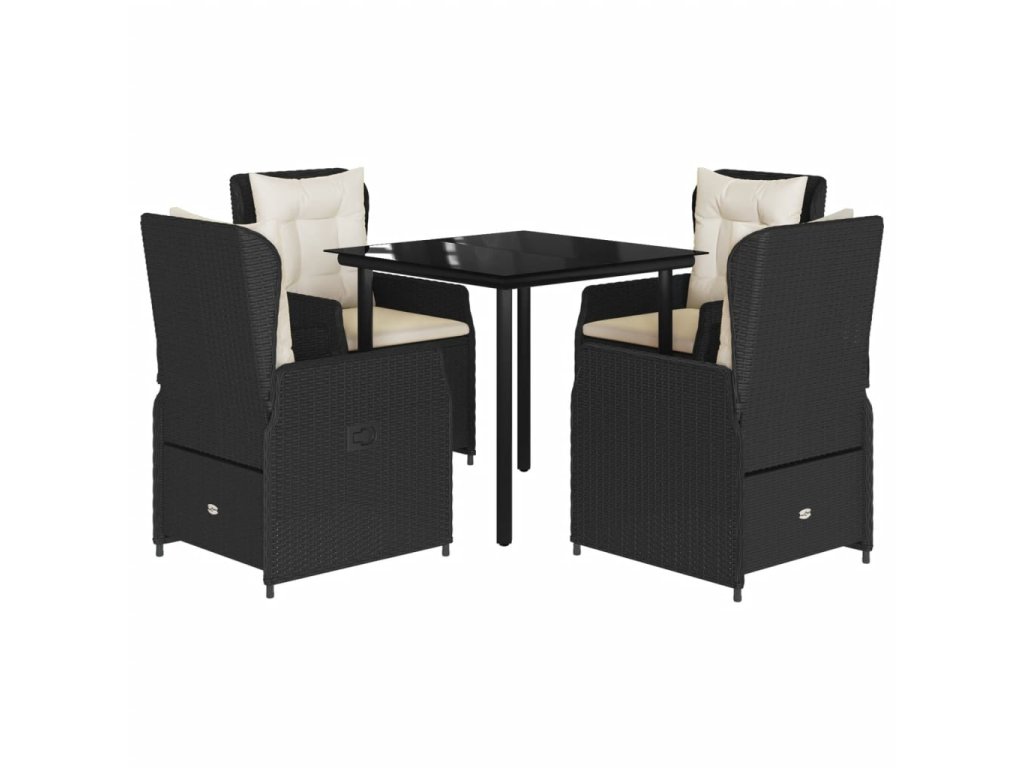 5dílný zahradní jídelní set s poduškami černý polyratan 3262834