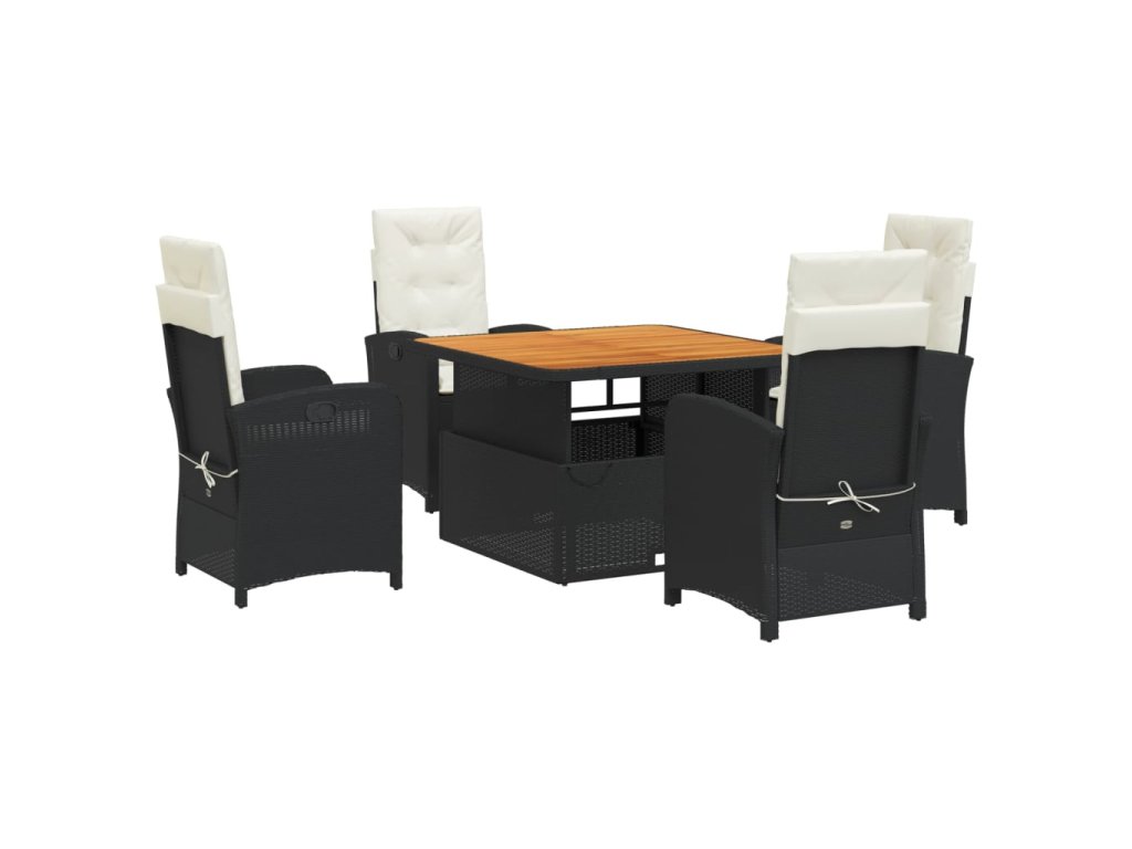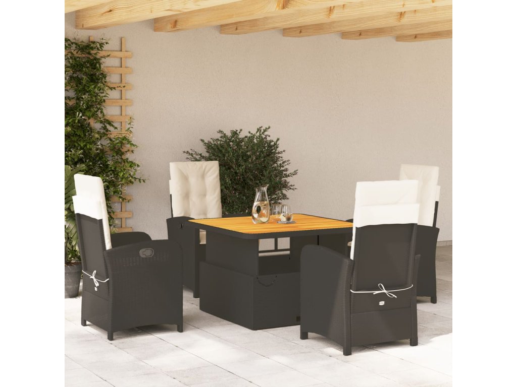 5dílný zahradní jídelní set s poduškami černý polyratan 3277317