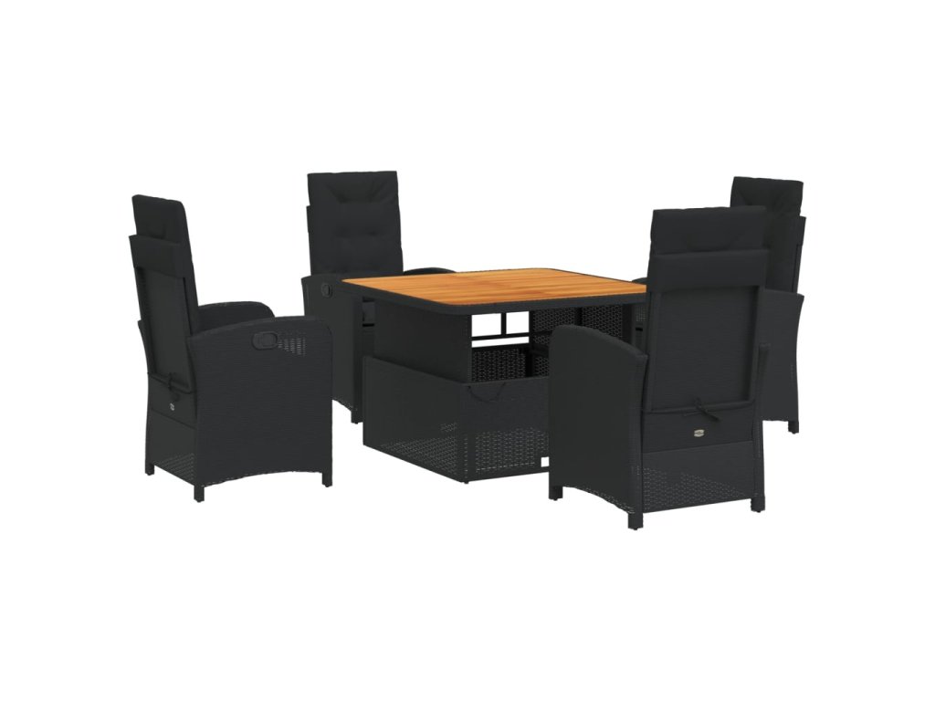 5dílný zahradní jídelní set s poduškami černý polyratan 3277329