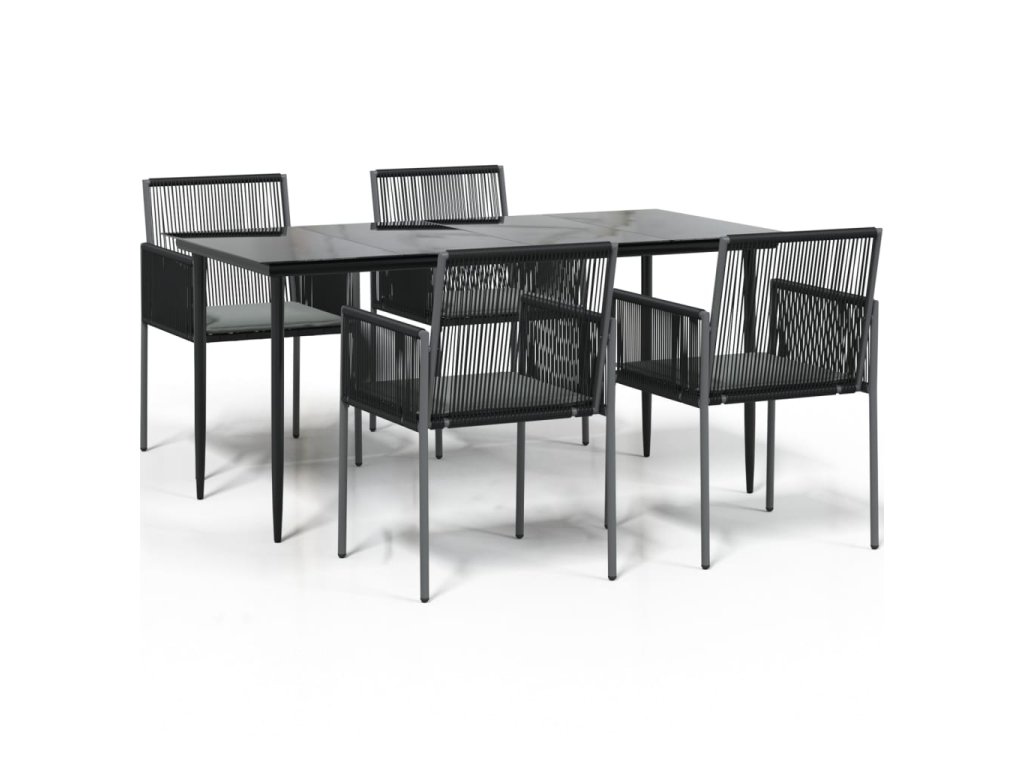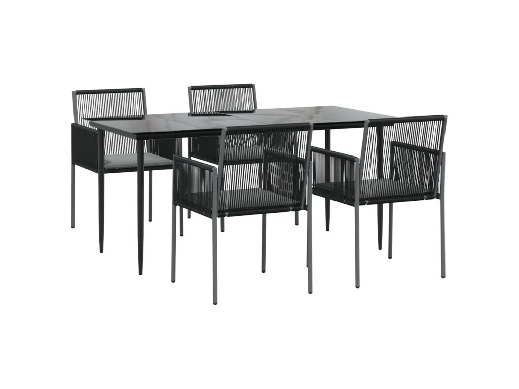 5dílný zahradní jídelní set s poduškami černý polyratan a ocel 3187069