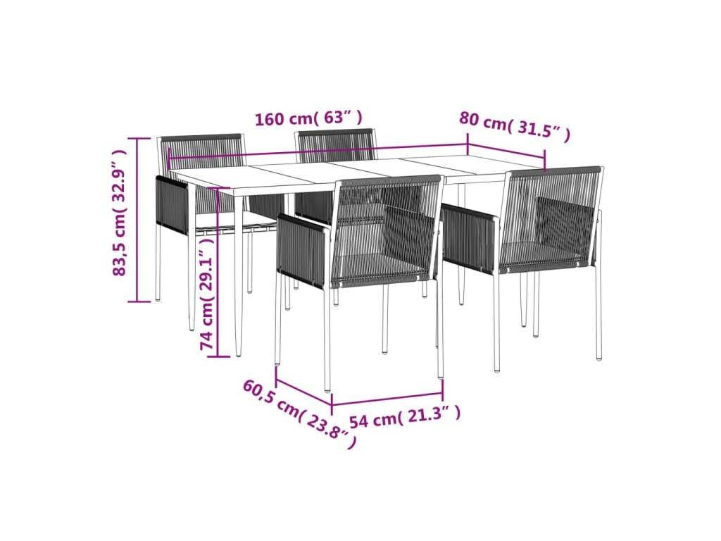 - Robustní a stabilní rám: Jelikož má ocelové rámy, je tento jídelní set robustní a stabilní pro každodenní venkovní použití.