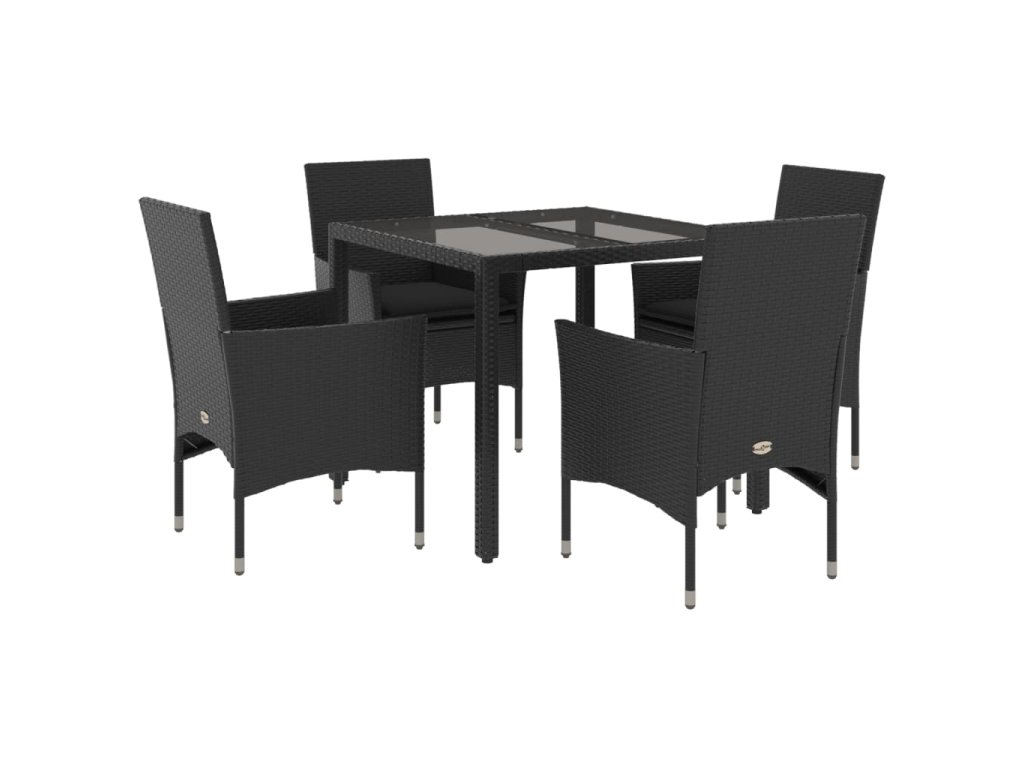5dílný zahradní jídelní set s poduškami černý polyratan a sklo 3278544