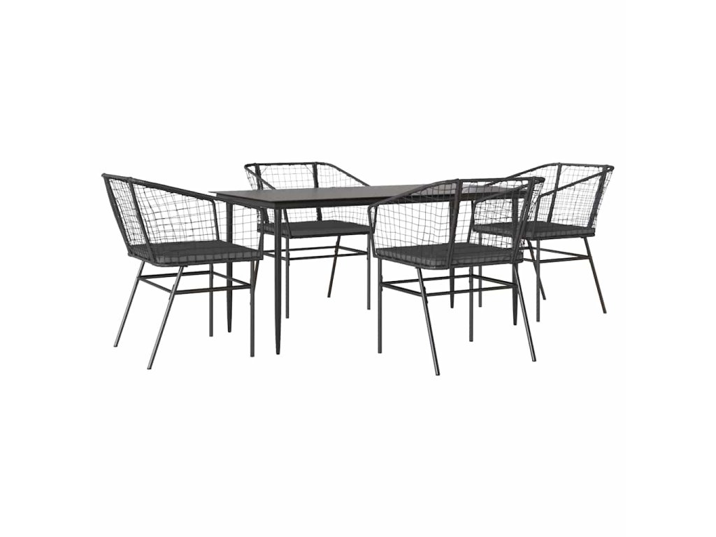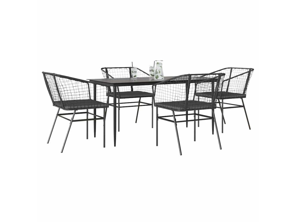 5dílný zahradní jídelní set s poduškami černý polyratan sklo 3334502