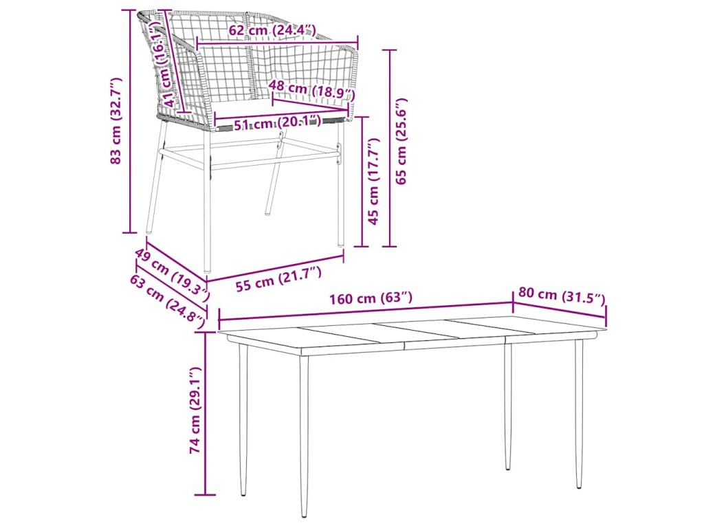- Materiál: PE ratan, práškově lakovaná ocel
