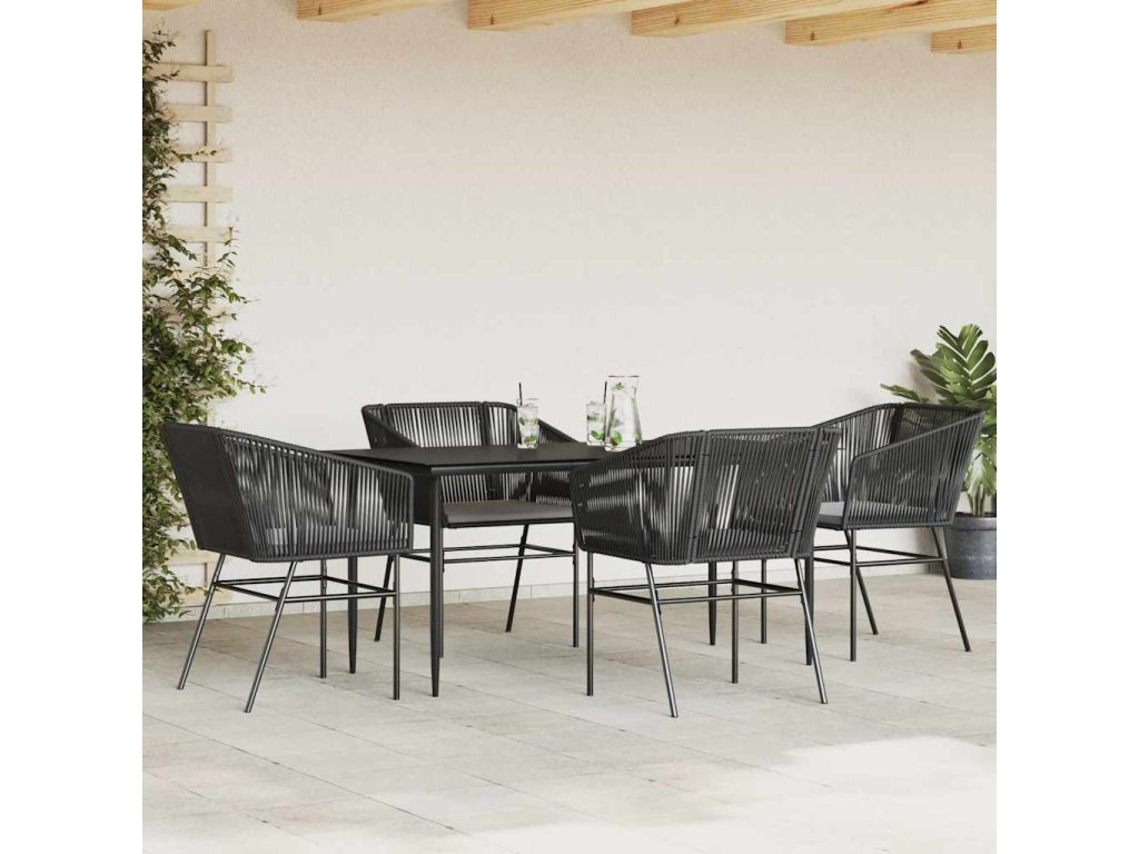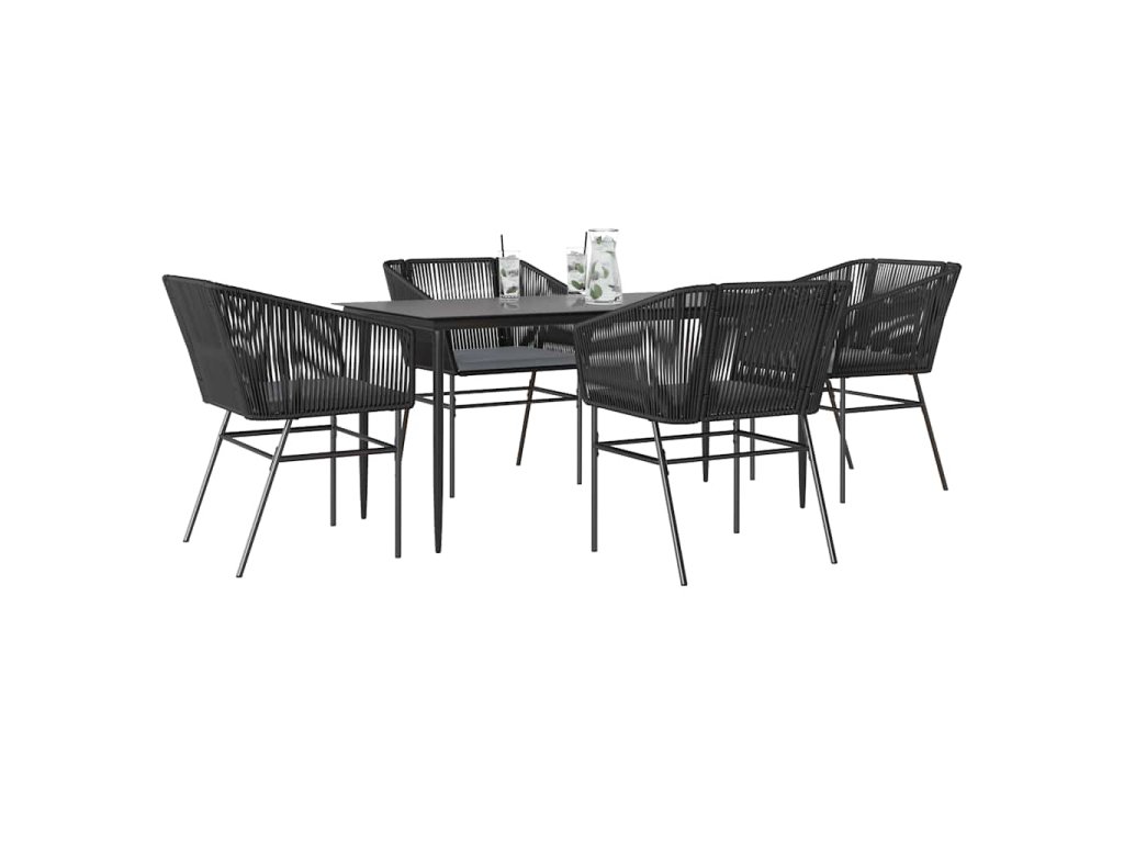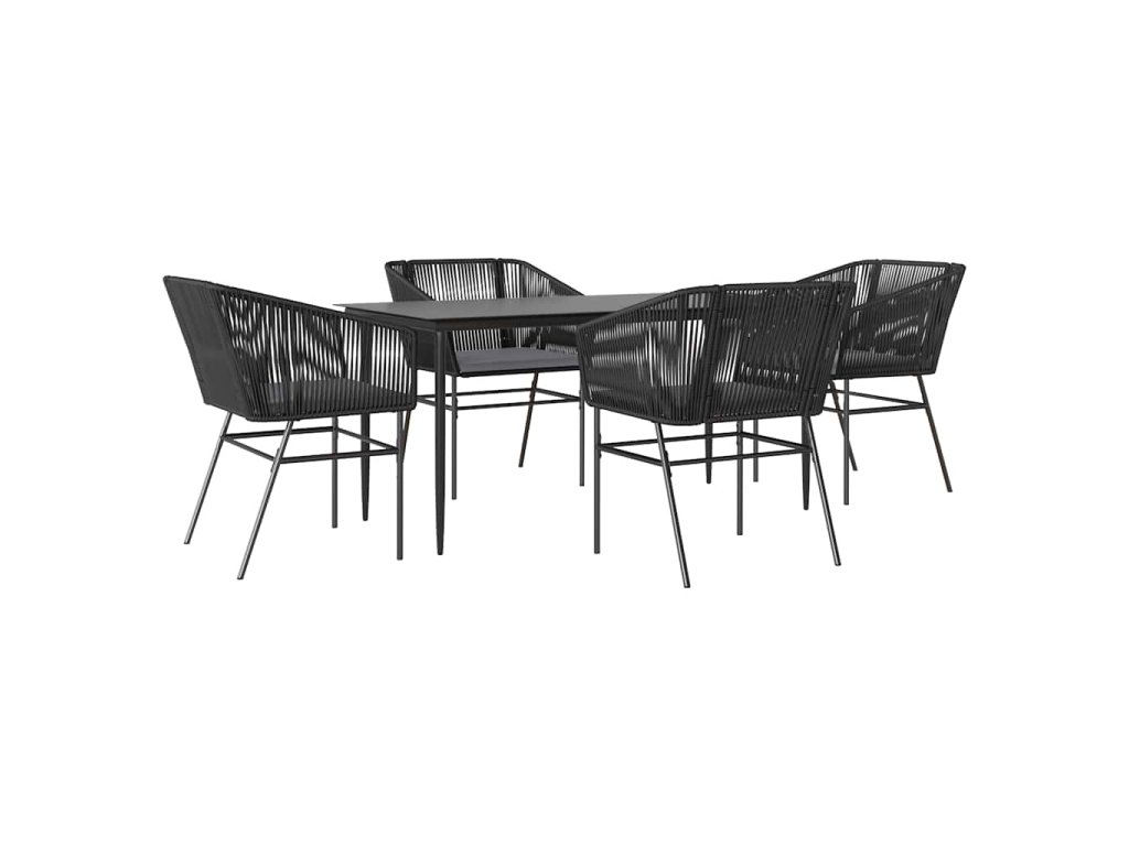5dílný zahradní jídelní set s poduškami černý polyratan sklo 3334516