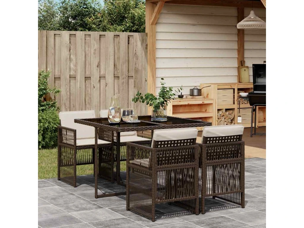 5dílný zahradní jídelní set s poduškami hnědý polyratan 3210897