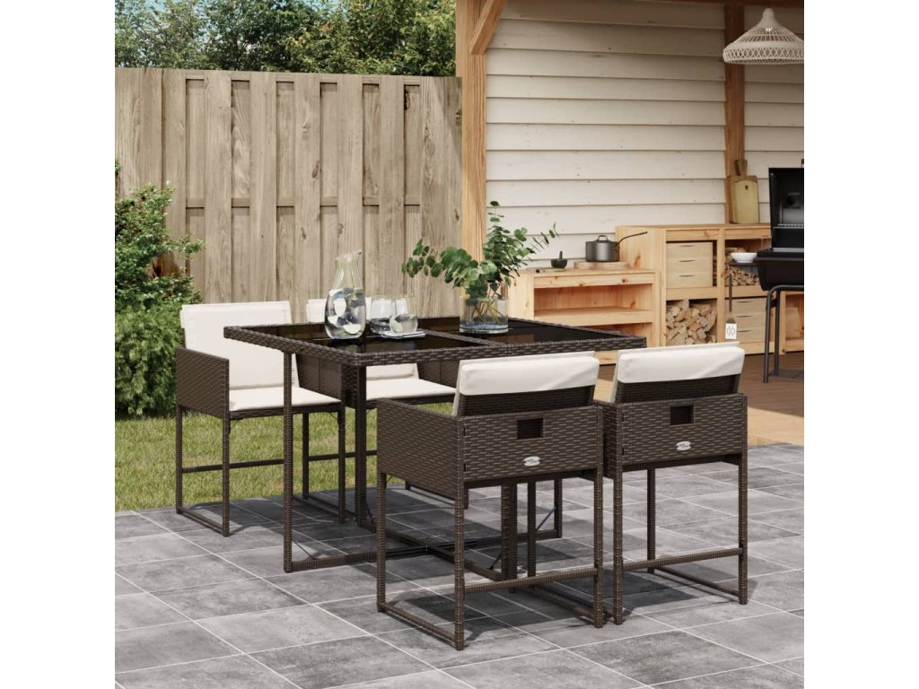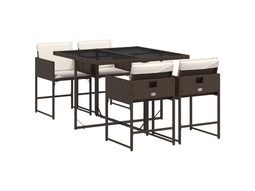 5dílný zahradní jídelní set s poduškami hnědý polyratan 3211257