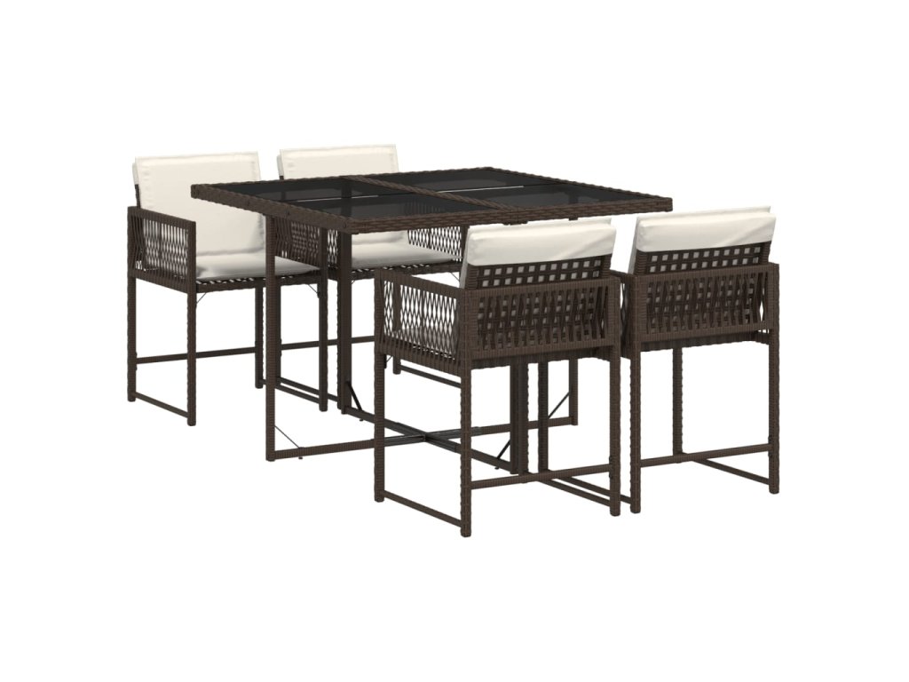 5dílný zahradní jídelní set s poduškami hnědý polyratan 3211437