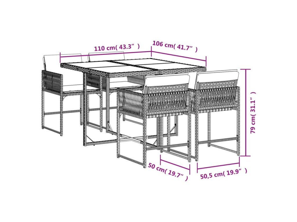 - Skleněná deska stolu: Deska venkovního stolu je zhotovena ze silného a odolného tvrzeného skla, takže ji snadno očistíte vlhkým hadříkem a zároveň do vašeho venkovního prostoru vnese nádech elegance.