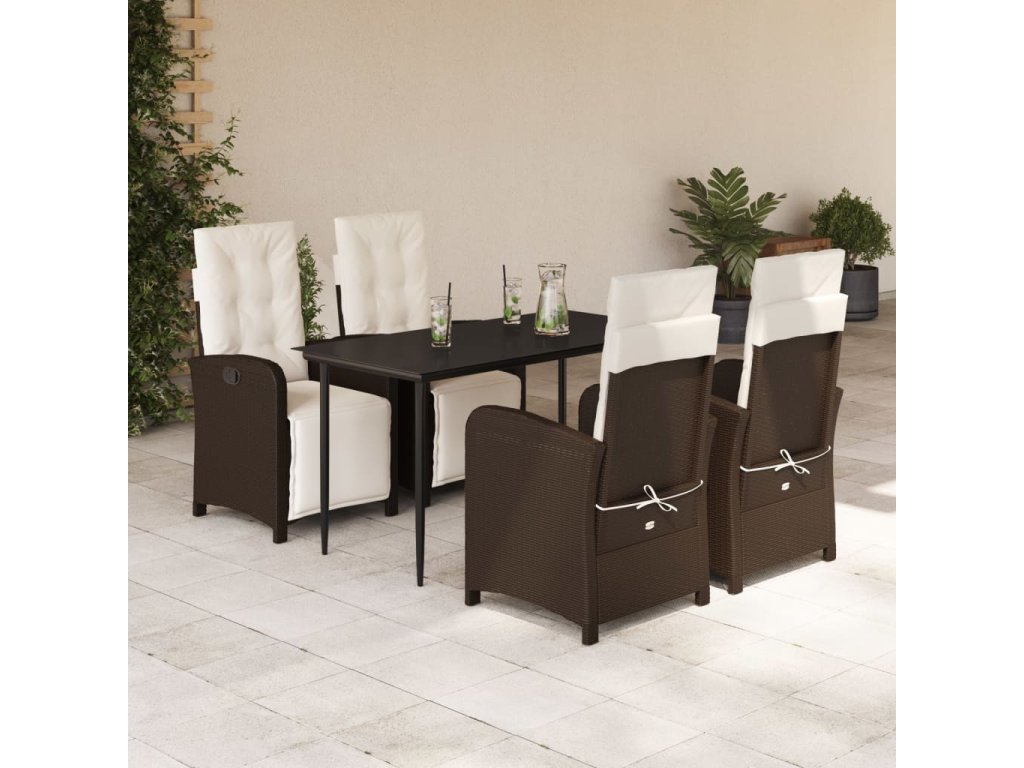 5dílný zahradní jídelní set s poduškami hnědý polyratan 3212544