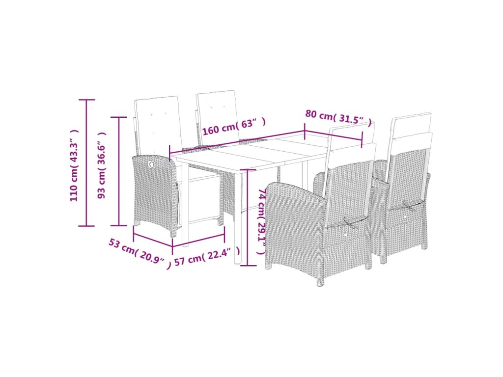 5dílný zahradní jídelní set s poduškami hnědý polyratan 3212552