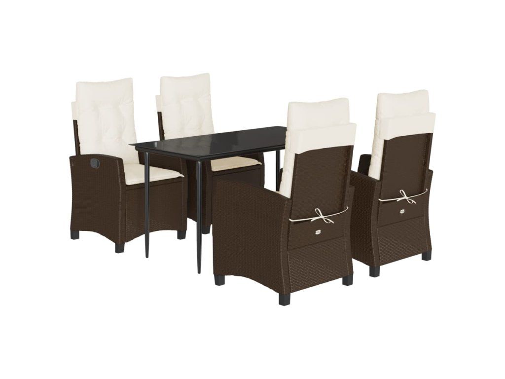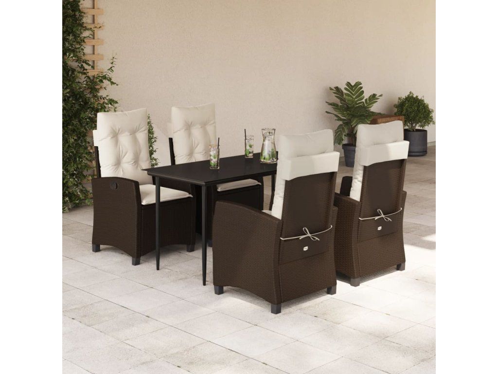 5dílný zahradní jídelní set s poduškami hnědý polyratan 3212765