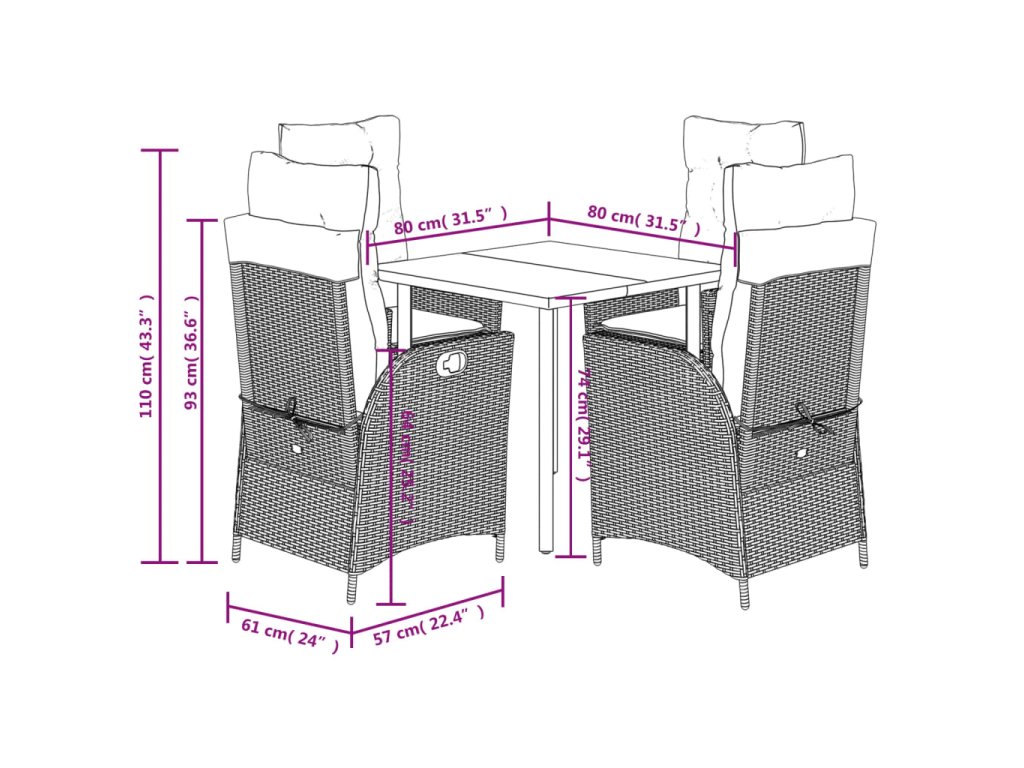 5dílný zahradní jídelní set s poduškami hnědý polyratan 3213205