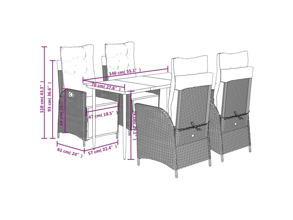 Tento zahradní jídelní set je skvělou volbou pro stolování pod širým nebem nebo jen tak pro odpočívání na zahradě, dvorku či terase.