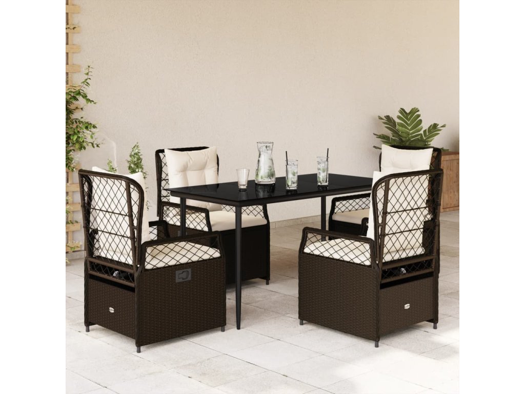 5dílný zahradní jídelní set s poduškami hnědý polyratan 3262973