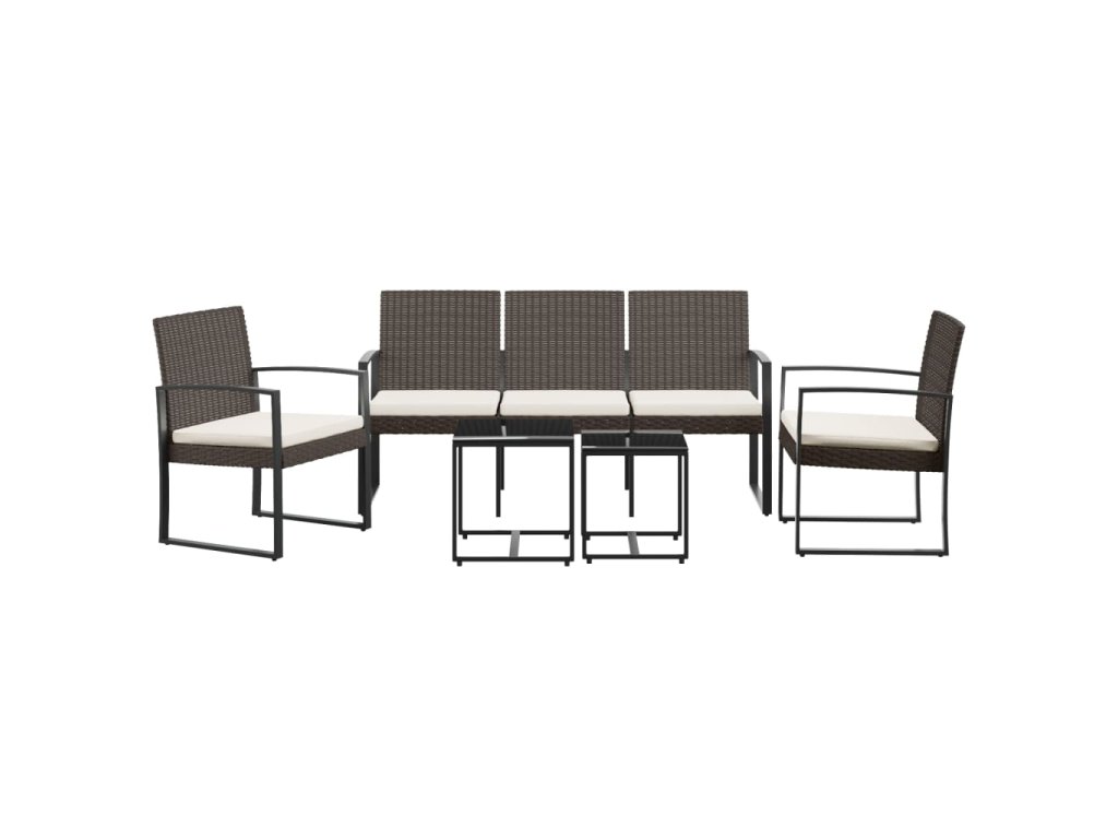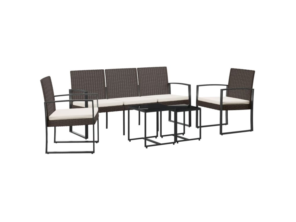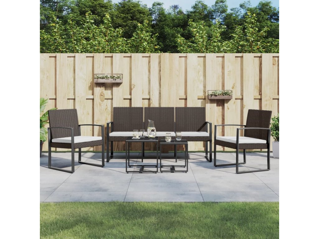 5dílný zahradní jídelní set s poduškami hnědý PP ratan 360219