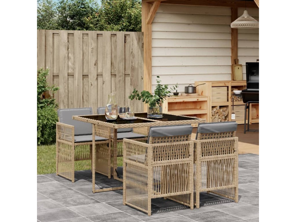5dílný zahradní jídelní set s poduškami mix béžové polyratan 3210900