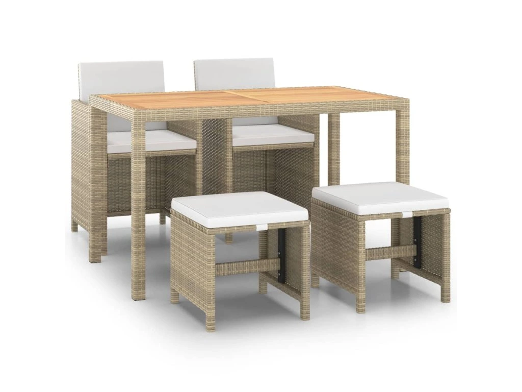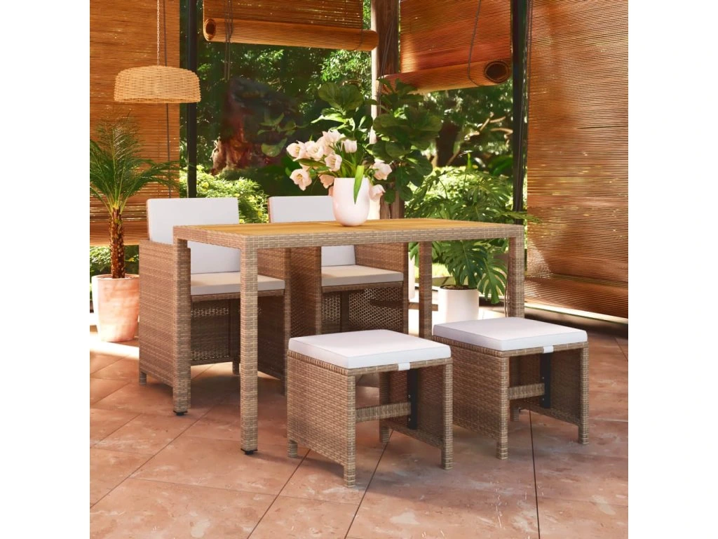 5dílný zahradní jídelní set s poduškami polyratan béžový 3095501